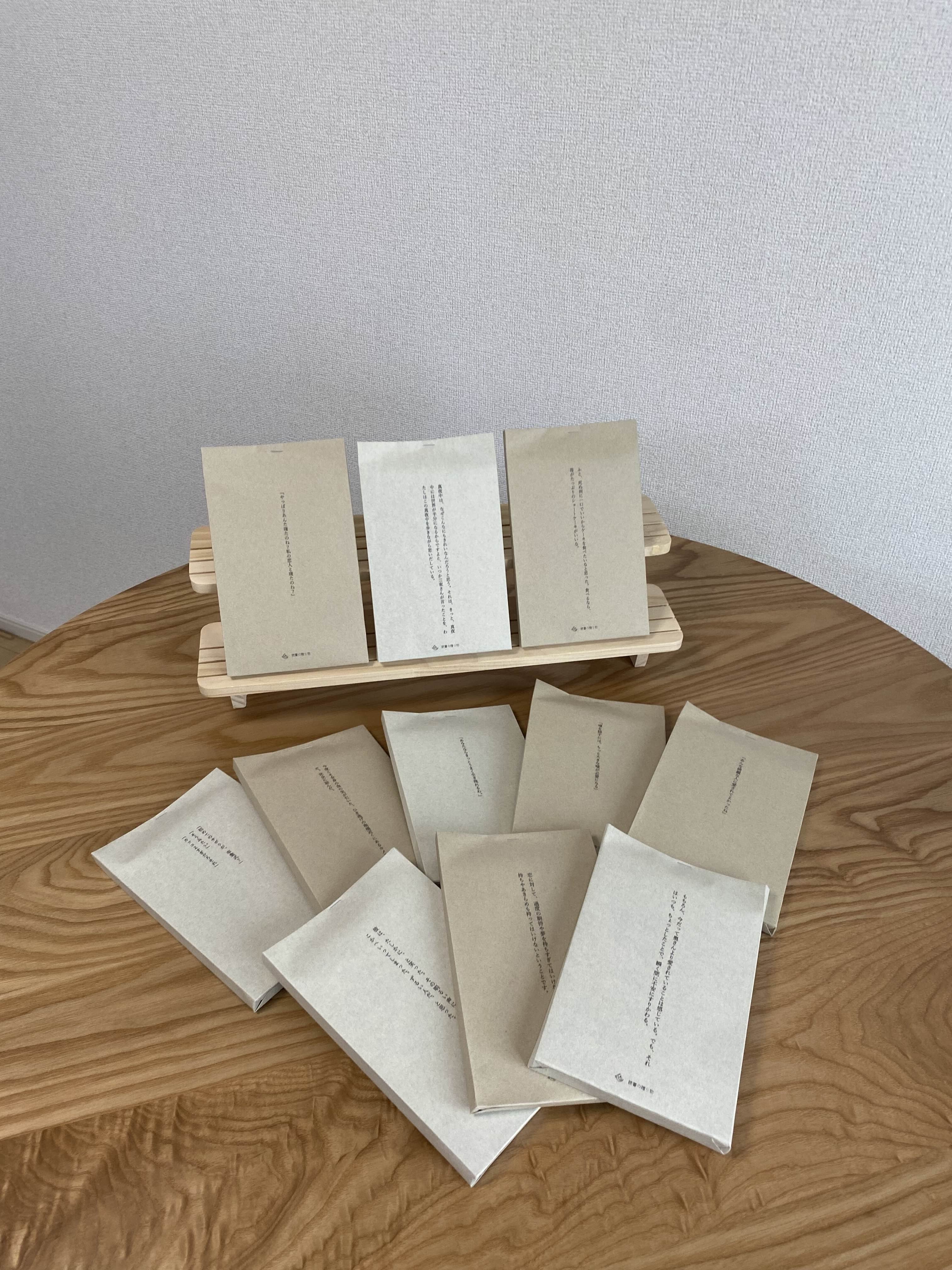 吸っても吸ったような気にならないこの煙草を手に取る度、それならばいっそ吸わないほうがいいではないか、と思う。 ──────────────────────── 商品情報 こちらは古本の文庫本になります。 包み紙に書かれた、たった1文──それがあなたの選ぶ手掛かりです。 どんなジャンルか、誰の作品か、それは開けてからのお楽しみ。 ※1冊ずつクリーニングを施していますが、多少の折り目や日焼けがあることがあります。状態の良いものを厳選しておりますが、古本であることをご理解の上、ご購入をお願いします。